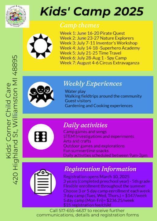 Located at 420 Highland St, Williamston, MI 48895, United States, Kids' Corner of Willamston is a premier destination for parents seeking top-notch childcare and after-school programs. With a phone number of 5176554637 and a website at gowcs.net, the center offers a wide range of services to cater to the diverse needs of its young students.